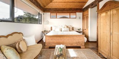 The word shanti in Sanskrit means peace which is what you’re sure to find while staying in this beautiful room. The Shanti Room has one of the best views in the house. There is a King-sized bed and seating area that opens out to a large wooden deck overlooking the Mandala Pool and the Red Rock Mountains.